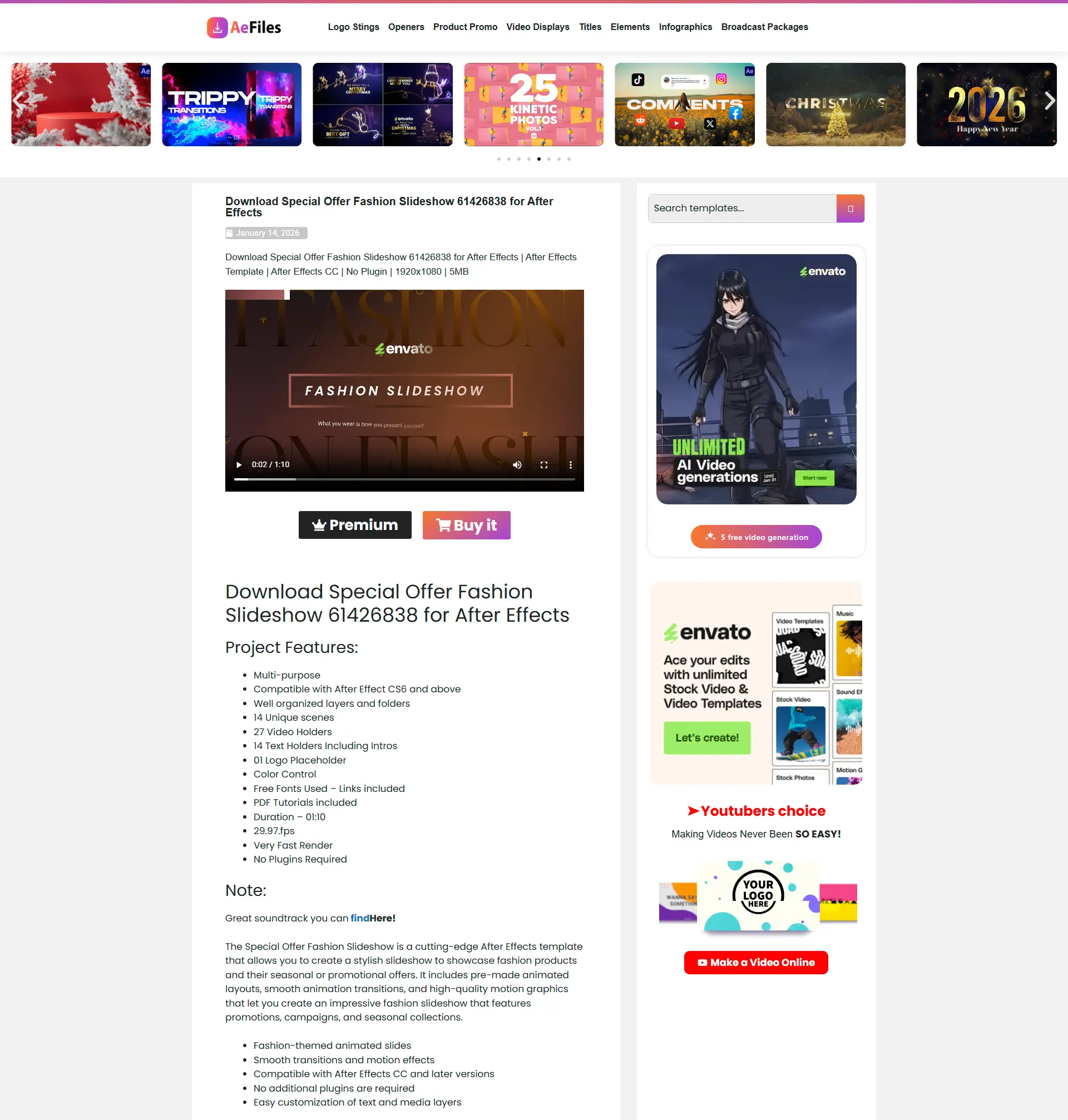 This website was designed and developed for a video template marketplace, allowing users to browse, preview, and purchase high quality video templates. A hover play preview feature was added so users can instantly see animations without leaving the page. The layout focuses on clear categories, trending templates, and fast discovery, with a clean, responsive design built around the client’s selling workflow.